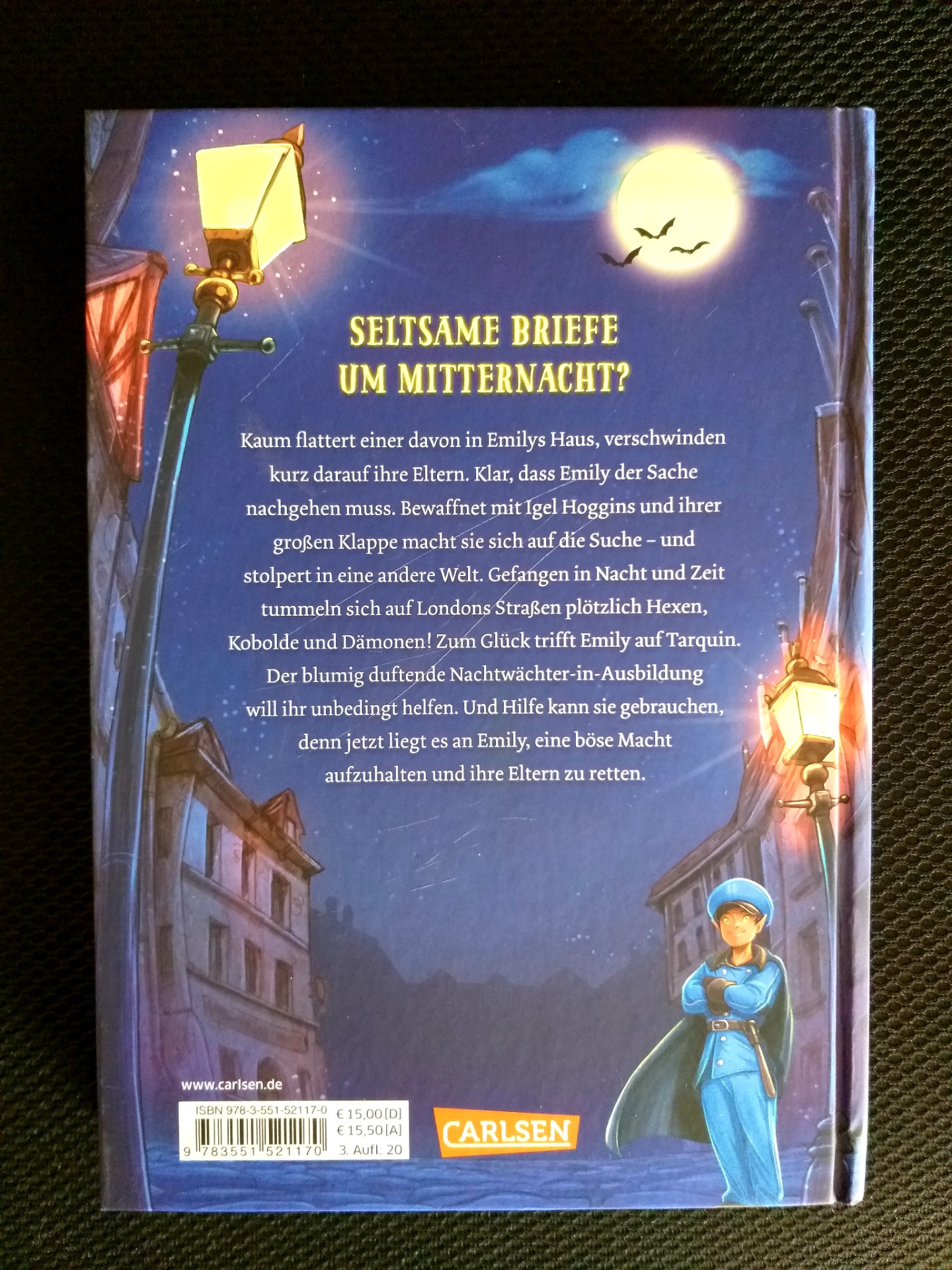 Seltsame Briefe um Mitternacht? Kaum flattert einer davon in Emilys Haus, verschwinden kurz darauf ihre Eltern. Klar, dass Emily dem nachgehen muss. Bewaffnet mit Igel Hoggins und ihrer großen Klappe macht sie sich auf die Suche - und stolpert in eine andere Welt. Plötzlich tummeln sich auf Londons Straßen Hexen, Kobolde und Dämonen! Und alle sind altmodisch viktorianisch gekleidet. Zum Glück trifft Emily auf Tarquin. Der blumig duftende Polizist der Nachtwache in Ausbildung will ihr helfen. Und Hilfe kann sie gebrauchen, denn jetzt liegt es an Emily, eine böse Macht aufzuhalten und ihre Eltern zu retten.
